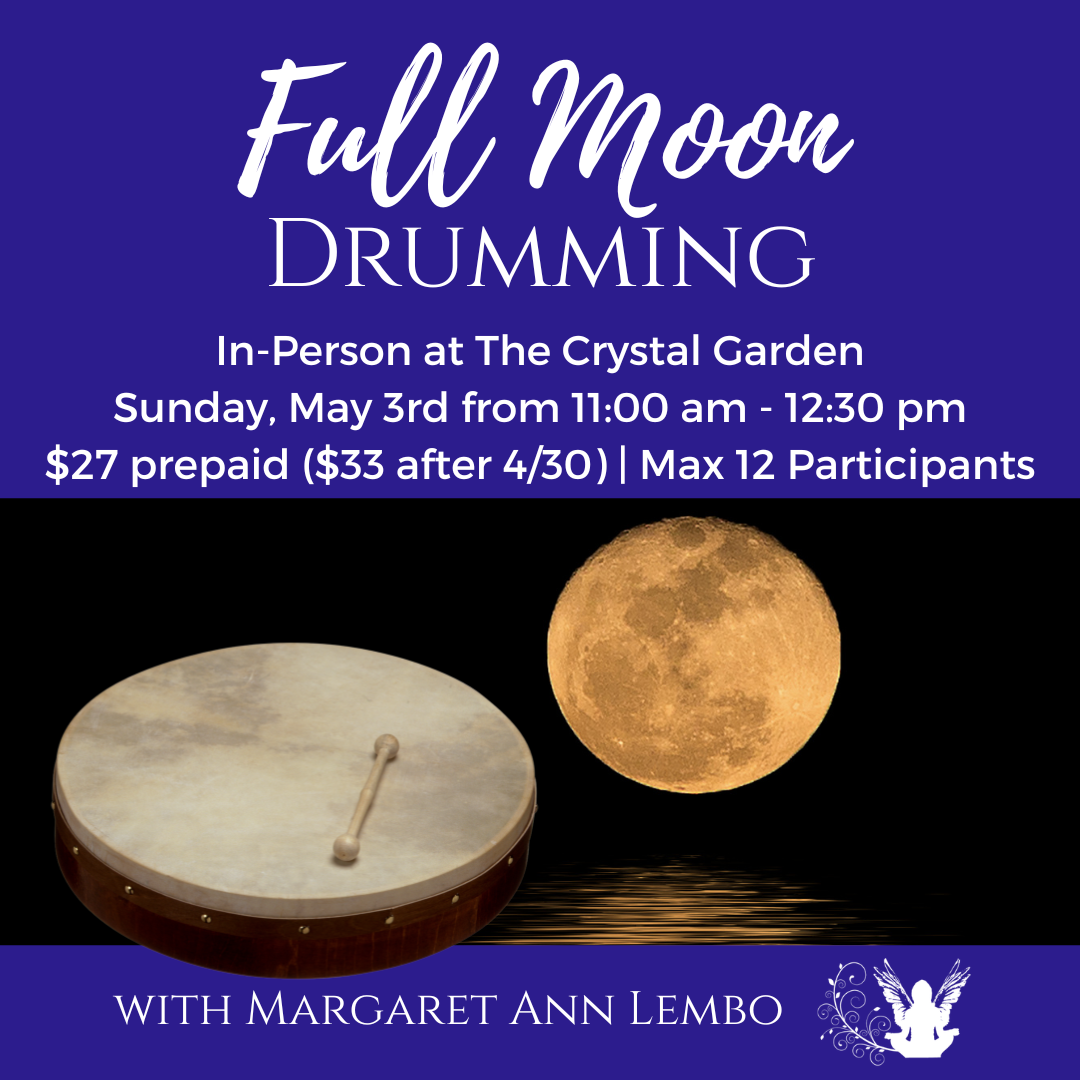 Use the energy of the full moon to release what you no longer want and invite that which you do. The first round of drumming is dedicated to removing what you don’t want. The second round of drumming creates your new reality.