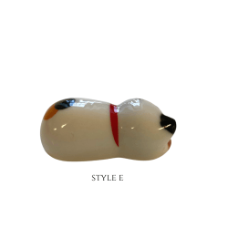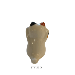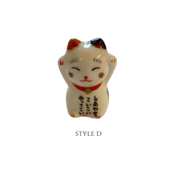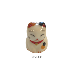 Maneki-neko come in different colors and styles and vary in degrees of detail. Common colors are white, black, red, and gold. In addition to statues, maneki-neko can be found in the form of keychains, piggy banks, air fresheners, pots, and numerous other media. Maneki-neko are sometimes referred to simply as “lucky cats”.