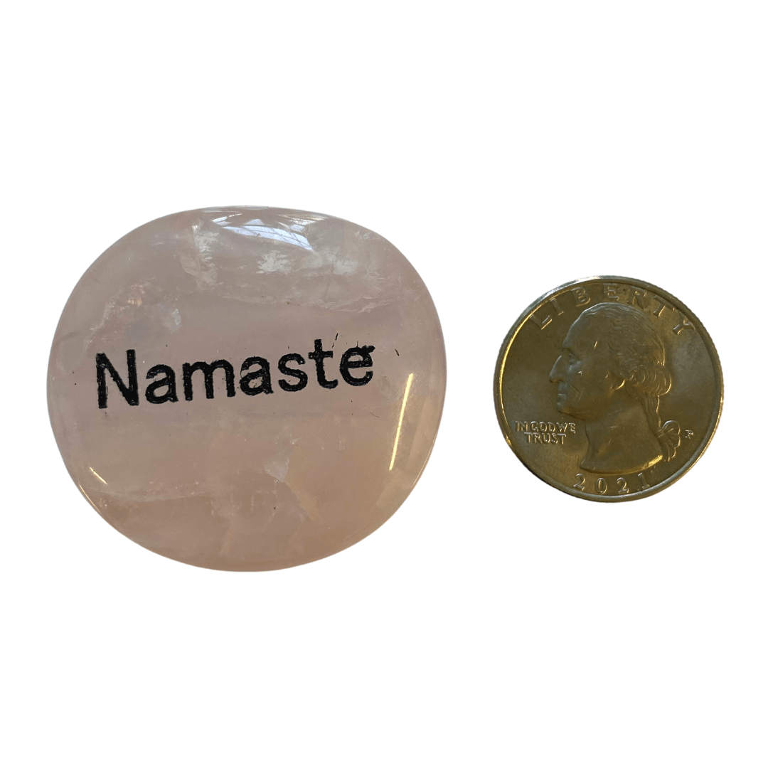 Rose Quartz Namaste Word stone is a smooth, polished gemstone, usually in the shape of an oval with a word or phrase to help you focus on the positive. They are helpful for meditation, relaxation, or anxiety relief.