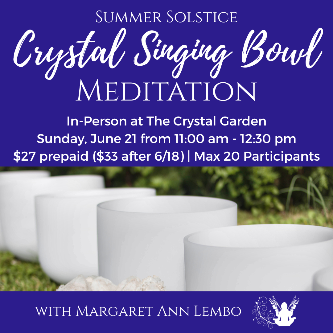 Can’t make it to The Crystal Garden? Try Margaret Ann’s Crystal Singing Bowl Meditation available as a CD or MP3
