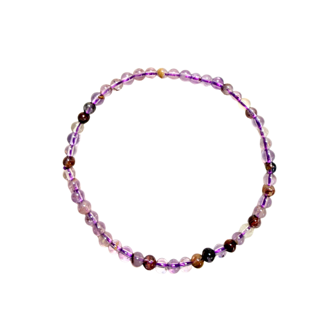 About the stone: Super Seven is a combination of Amethyst, Clear Quartz, Smoky Quartz, Cacoxenite, Rutile, Geothite and Lepidocrocite.