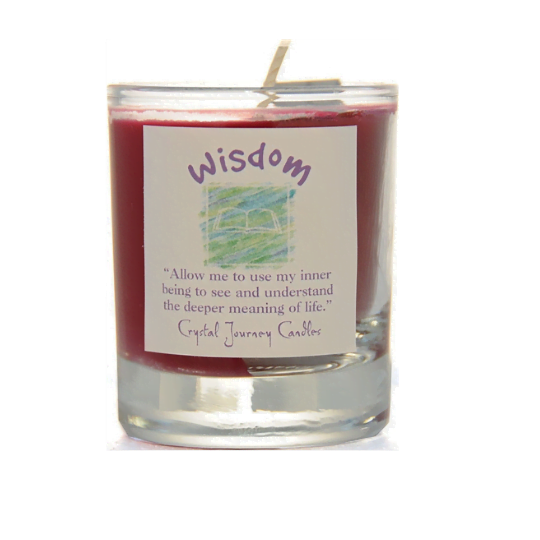 Charge your Wisdom Crystal Journey Glass Filled Votive Soy CandleSit in your sacred place and will the energy to surround and protect yourself with the white light of the universe. Hold the unlit candle and begin to feel the energy held within. Will the energy into your being where it is most needed. It is time to light your candle and recite its blessing.